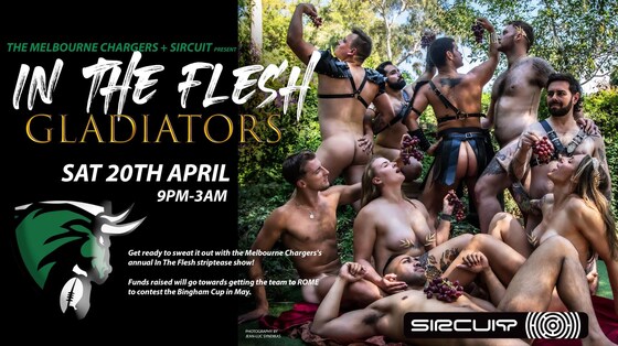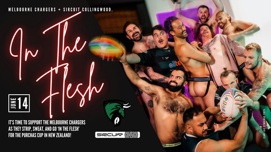 Get ready to sweat it out with the Melbourne Chargers's annual In The Flesh striptease show! Our dancers are ready to bring the heat with their seductive moves - are you ready to get all hot and bothered?  We'll also be joined in throughout the evening by some incredible drag and cabaret performers, hosted by the one and only Bumpa Love, star of RuPaul's Drag Race Down Under Season 3 and a staple of Australian drag! Funds raised will go towards getting the team to Rome to contest the Bingham Cup in May and to bringing more people into the sport closer to home.  The night is sure to be a sell out so grab your tickets to avoid the queue. This event presented in partnership with Sircuit, with thanks to the sponsors of the Melbourne Chargers: Sircuit - queer, safe fun in the heart of Fitzroy Brentford Cosmetic Dental - smile with pride with Dr Adam Mattson's exceptional care. Thorne Harbour Health - a healthy future for our sex, sexuality & gender diverse communities Muscle Motion - Stephen Allan provides a range of physical therapies with care and thoroughness Photo Credit: Jean-Luc Syndikas @jl_syndikas_art